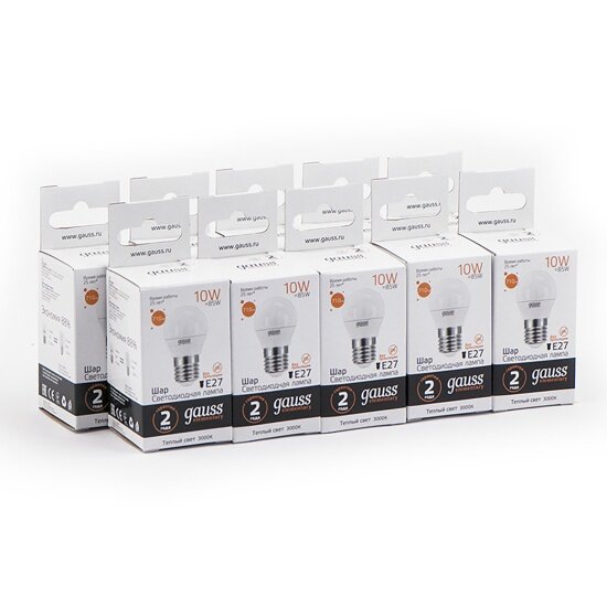 (10 шт)Лампа Gauss Elementary Шар 10W 710lm 3000K Е27 LED 1/10/100 2 703 ₽