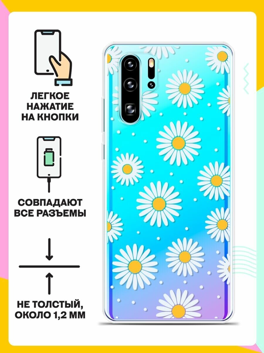 Силиконовый чехол на Huawei P30 Pro Ромашки / для Хуавей П30 Про информация: