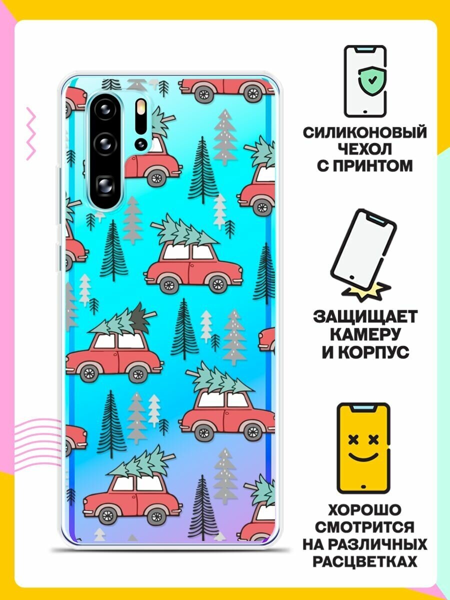 Силиконовый чехол на Huawei P30 Pro Машины с елками / для Хуавей П30 Про информация: