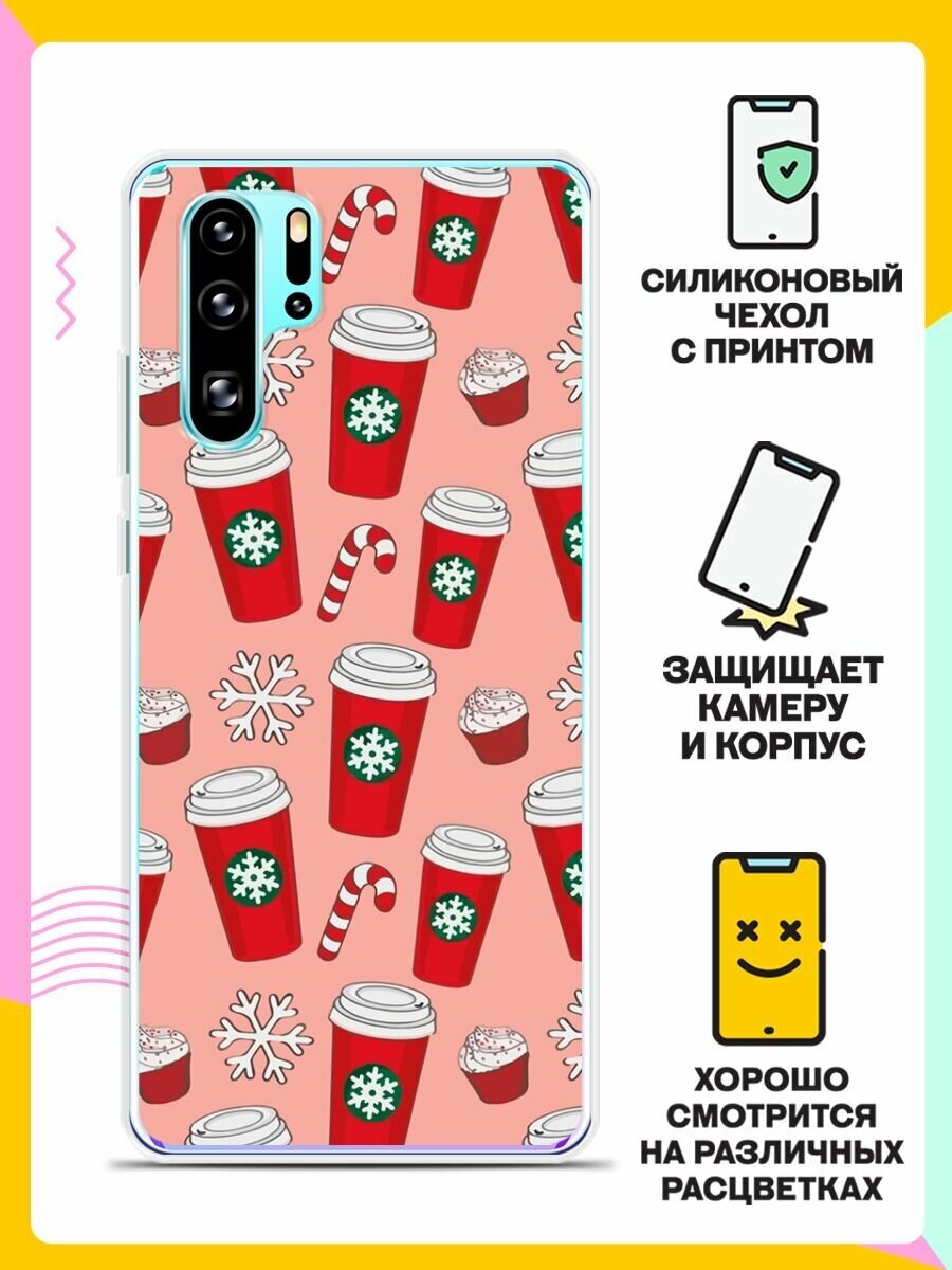 10 цен на Силиконовый чехол на Huawei P30 Pro Узор из стаканов / для Хуавей П30 Про