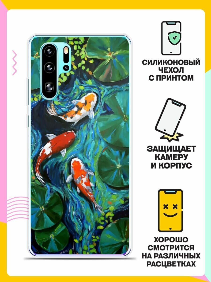 Силиконовый чехол на Huawei P30 Pro Карпы / для Хуавей П30 Про информация: