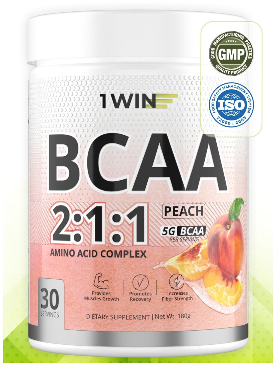 Аминокислоты BCAA 2:1:1 (БЦАА), Быстрорастворимые, со вкусом Персик, 30 порций, 180грамм информация: