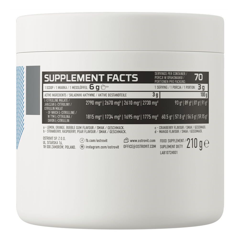 Отдельные аминокислоты Ostrovit Citrulline апельсин 210 гр информация: