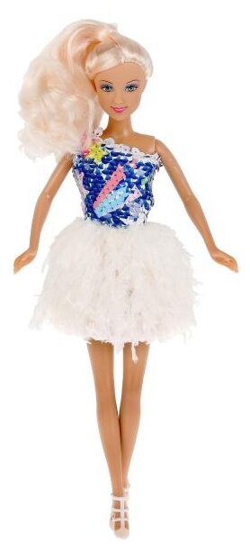 Кукла Defa Lucy Модница в платье с пайетками с бело-голубым верхом и белой пышной юбкой 29 см