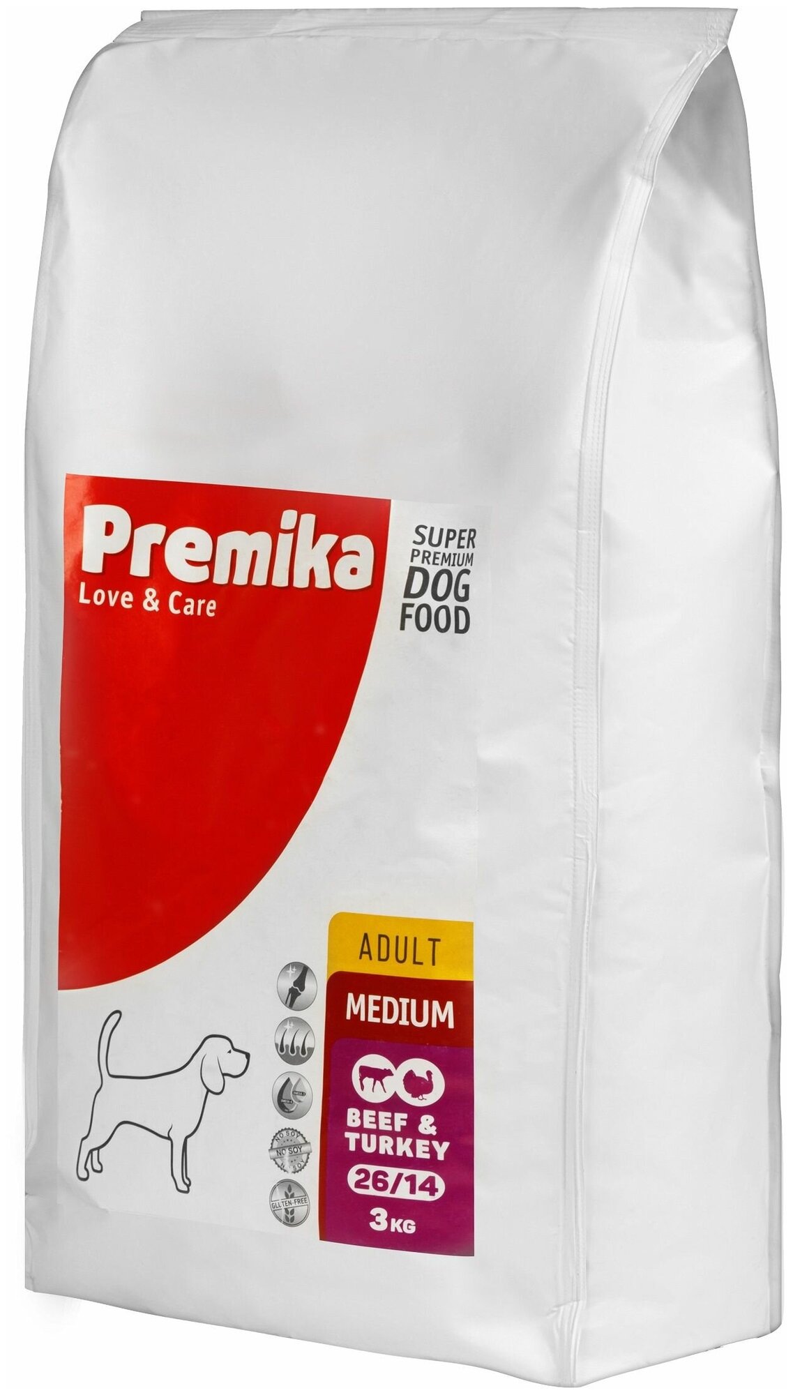 10 цен на Сухой корм для собак Premika Adult Medium Beef & Turkey (Говядина + Индейка) 26/14 - 3 кг