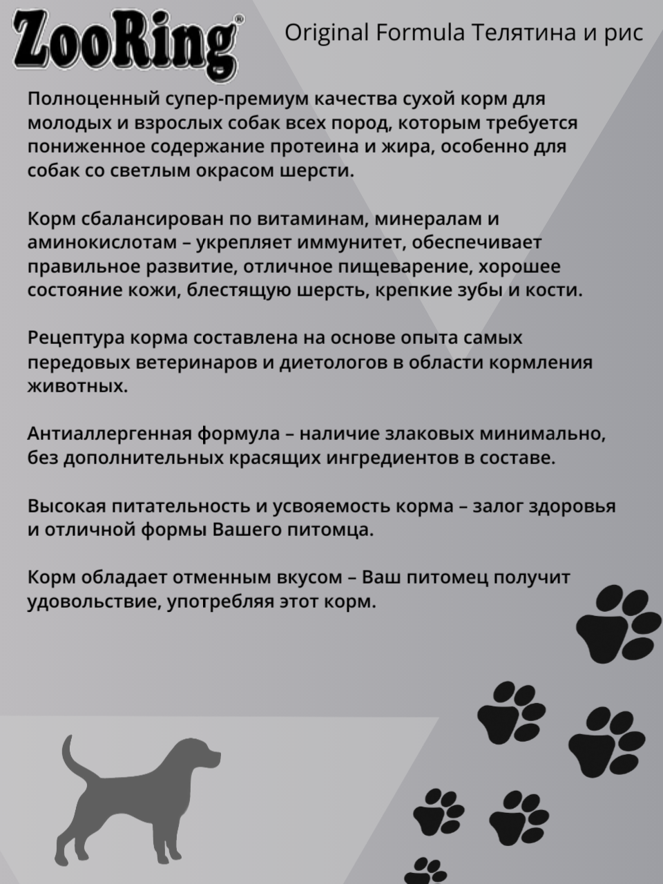 Сухой корм для собак ZooRing Original formula телятина, с рисом 2 кг информация: