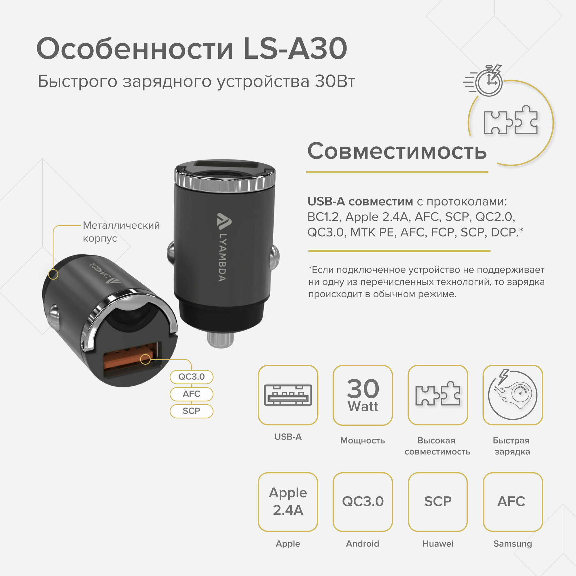 Автомобильное зарядное устройство Lyambda 30Вт USB-A (QC3.0) Aluminum LS-A30 Space grey информация:
