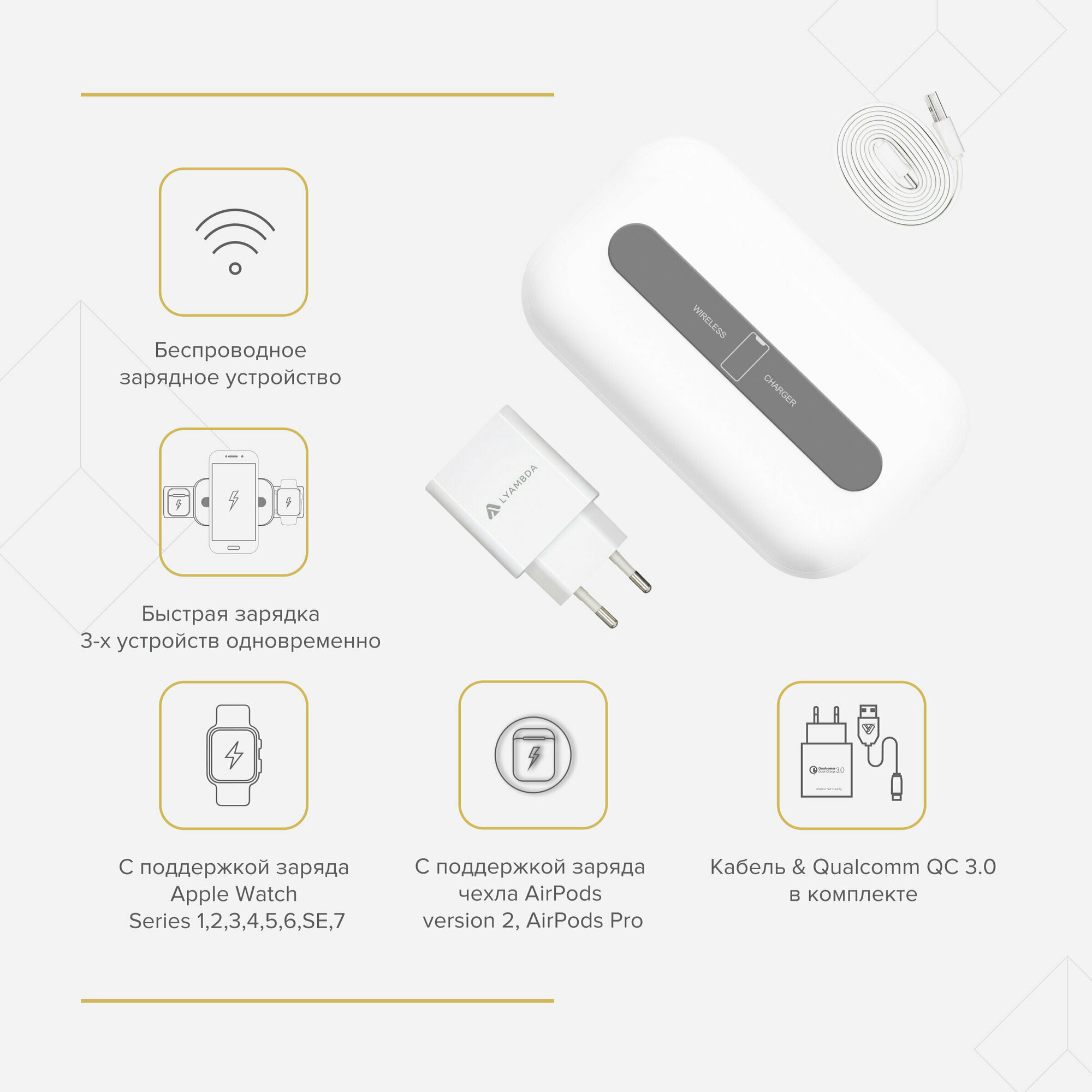 Зарядное устройство беспров, 10W + СЗУ, тел+часы+наушники, Lyambda,LNT5-WT информация: