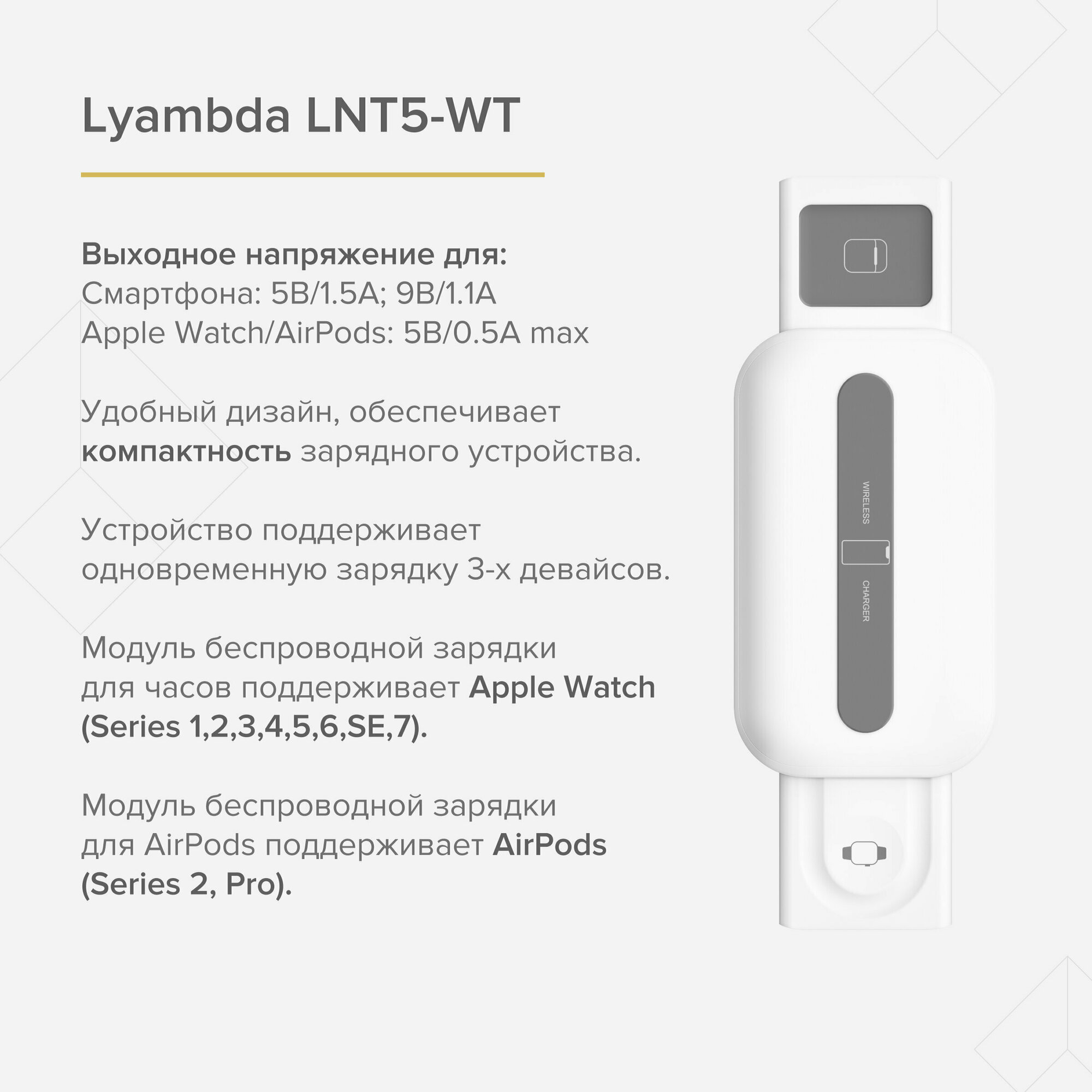 Зарядное устройство Lyambda LNT5-WT для телефона, часов и наушников беспроводное (белый)