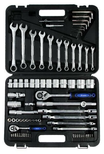 10 цен на Набор инструментов в кейсе тундра, автомобильный, CrV, 1/2" и 1/4", 77 предметов 881834