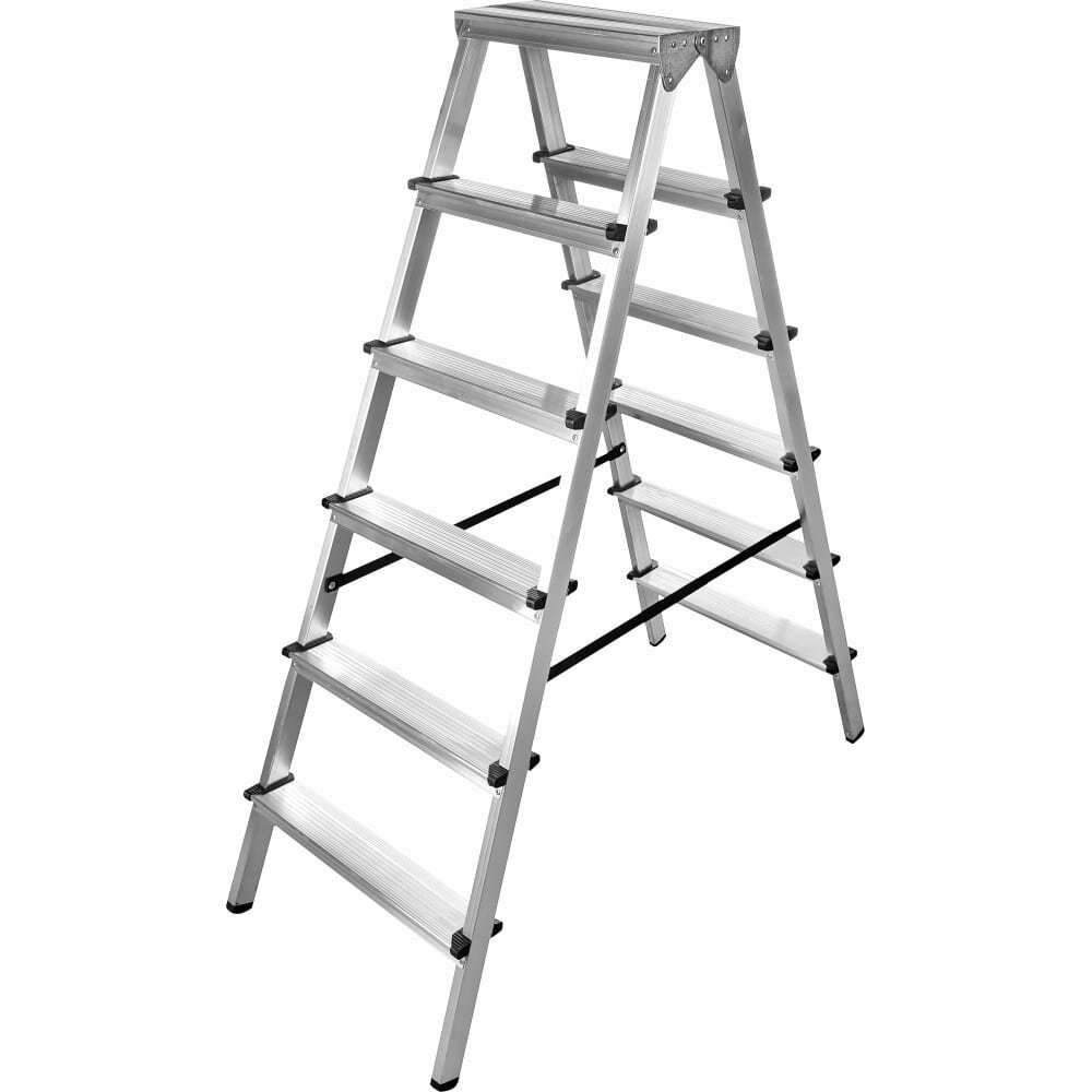 Стремянка стальная с алюминиевыми ступенями двухсторонняя Новая Высота NV 1140, 2х6 ступеней 80 мм