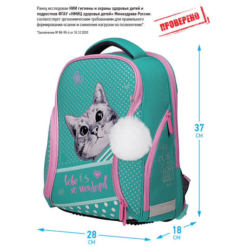 Отзывы на RU06205 Ранец Berlingo Nova "Curious cat" 37*28*18см, 2 отделения, 2 кармана, анатомическая спинка