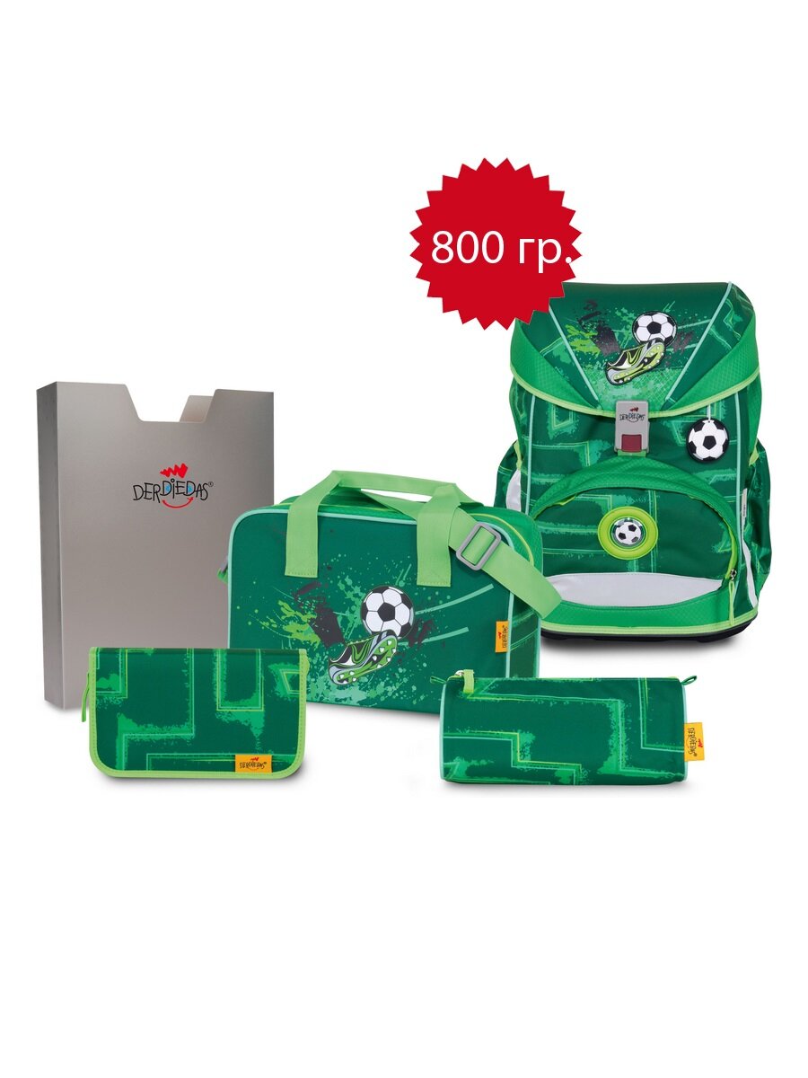 Ранец школьный с наполнением легкий ортопедический DerDieDas ErgoFlex "Футбол на траве" 800г, 5 предметов информация:
