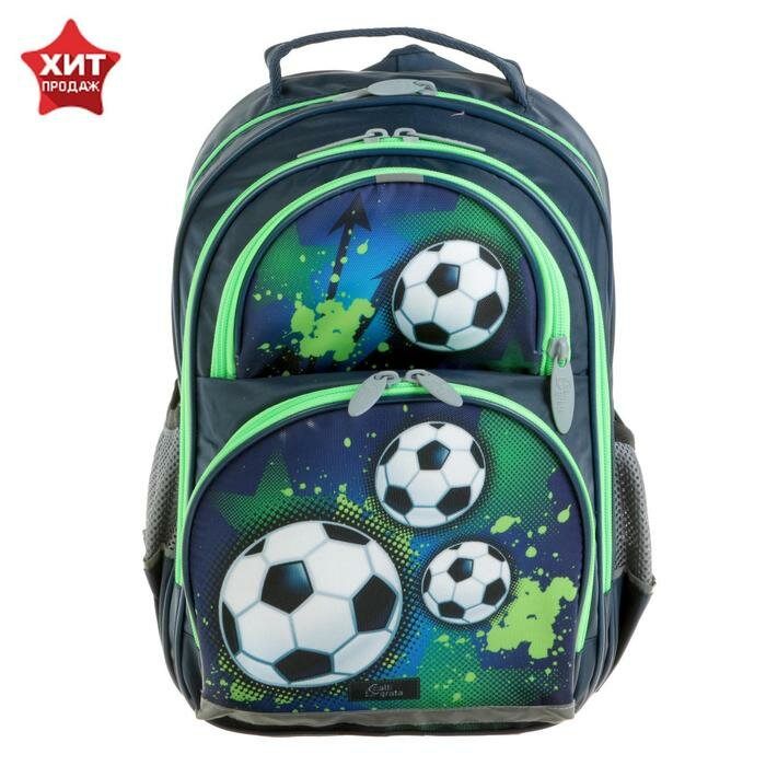 10 цен на Рюкзак школьный, Calligrata, 36 х 23 х 13 см, эргономичная спинка, "Футбол", синий./В упаковке шт: 1