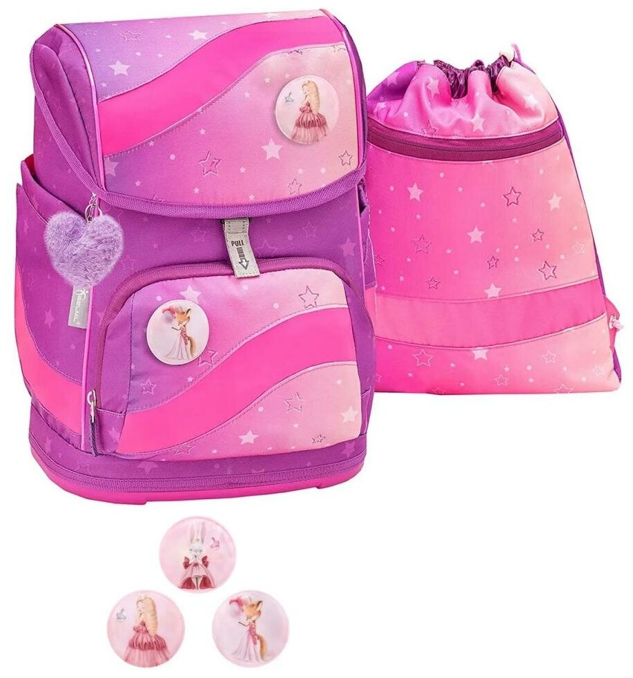 Ранец школьный каркасный, с ортопедической спинкой BELMIL Smarty OMBRE 2 с наполнением, эрго-спинка, магнитный замок, мешок для обуви информация: