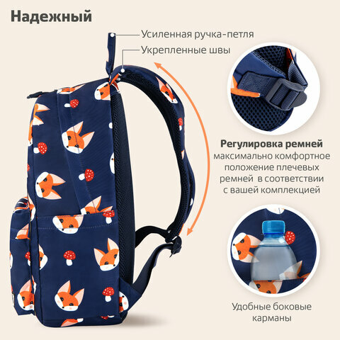 Рюкзак BRAUBERG DREAM универсальный с карманом для ноутбука, комплект 3 шт., эргономичный, "Foxes", 42х26х14 см, 270770 информация: