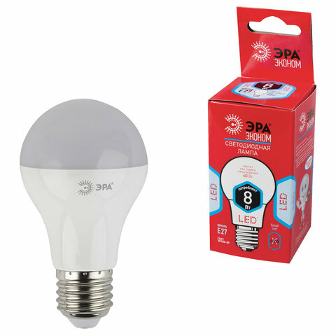 Отзывы на Лампа светодиодная ЭРА, комплект 200 шт., 8 (55) Вт, цоколь E27, грушевидная, холодный белый свет, 25000 ч., LED smdA55\60-8w-840-E27ECO, A60-8w-840-E27