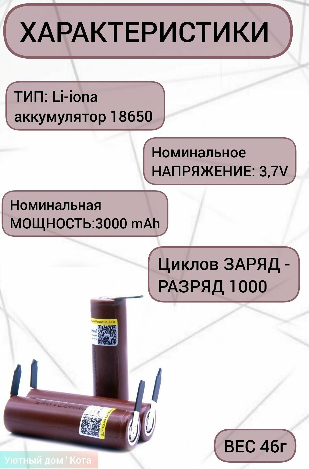 | Типоразмер | 18650 (168A) |