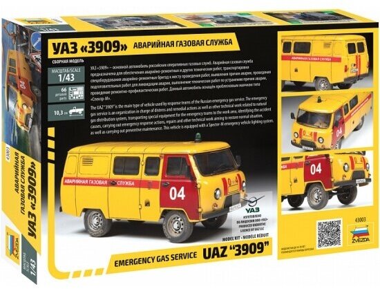 Сборная модель ZVEZDA УАЗ 3909 Аварийная газовая служба арт.43003 1:43