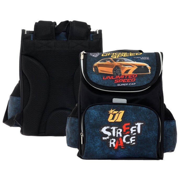 Отзывы на Ранец Стандарт Attomex Lite Street Race, 34 х 27 х 20 см, чёрный, синий