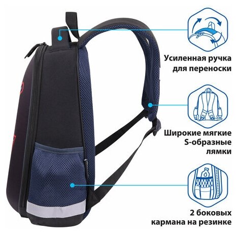 Ранец ортопедический школьный Пифагор для мальчика, EVA Basic, 1 отделение "Shuriken" 39х30х16 см (270693)