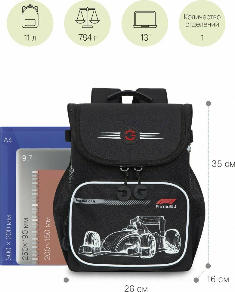 Рюкзак школьный Grizzly RAl-295-2/1 черный информация: