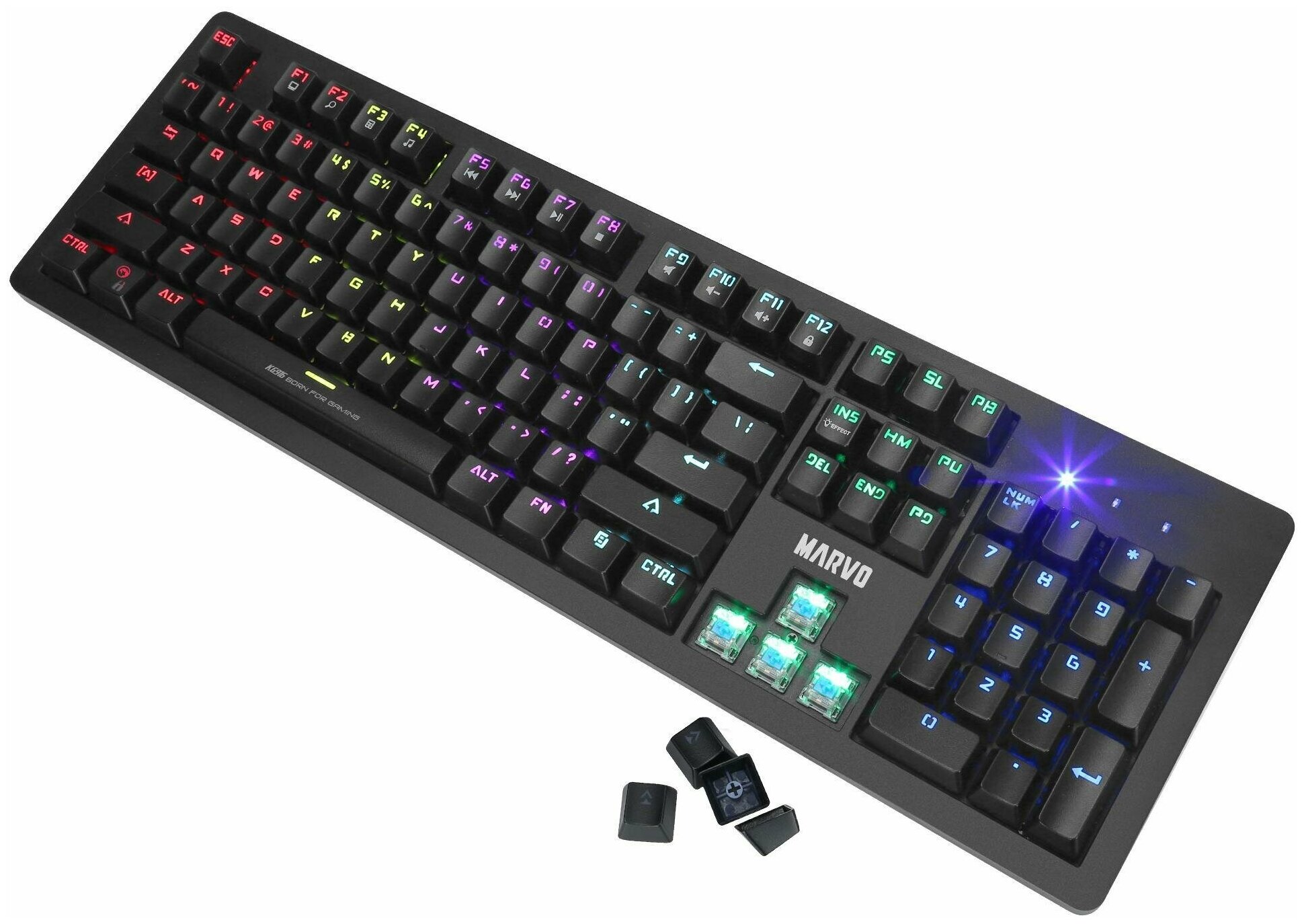 10 цен на Клавиатура Marvo Kg916, игровая, проводная, механическая,104 клавиши, Usb, подсветка, черная Marvo 9 .