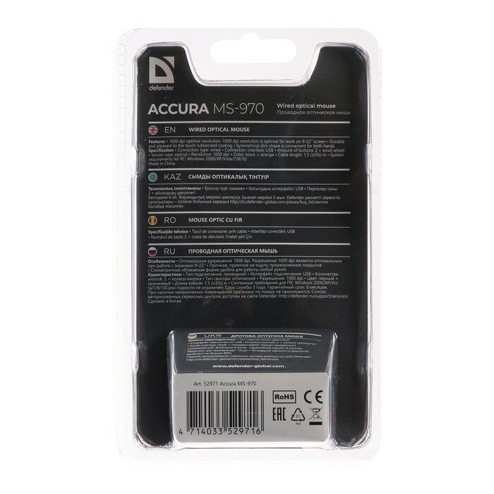 10 цен на Мышь Defender HIT Accura MS-970, проводная, оптическая, 1000 dpi, 3 кнопки, оранжевая