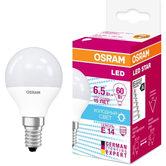 Отзывы на Светодиодная лампа Ledvance-osram OSRAM LS CLP 60 6.5W/840 (=60W) 220-240V FR E14 550lm 240* 15000h