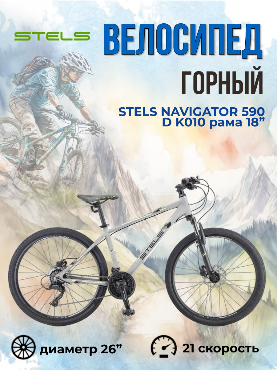 Велосипед Stels Navigator 590 D K010 серый/салатовый (LU094326) рама 18" информация: