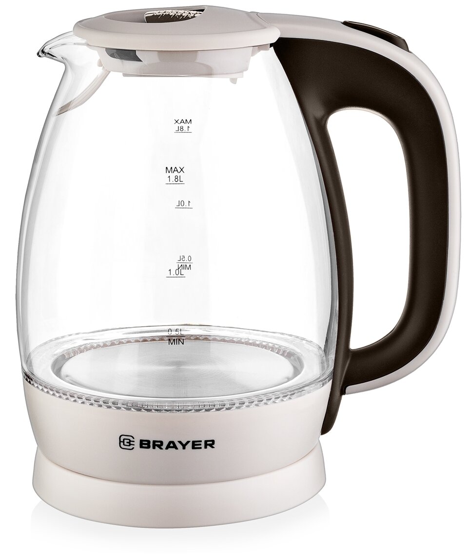 Чайник BRAYER BR1045BN, 1,8 л, 2200 Вт, закрытый нагревательный элемент, стекло, бежевый