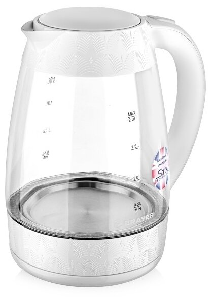 Чайник электрический BRAYER 1024BR-BK, стекло, 2 л, 2200 Вт, белый