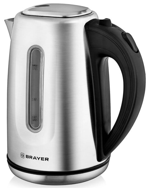 Чайник электрический BRAYER, 1,7, серебристый/черный, BR1014