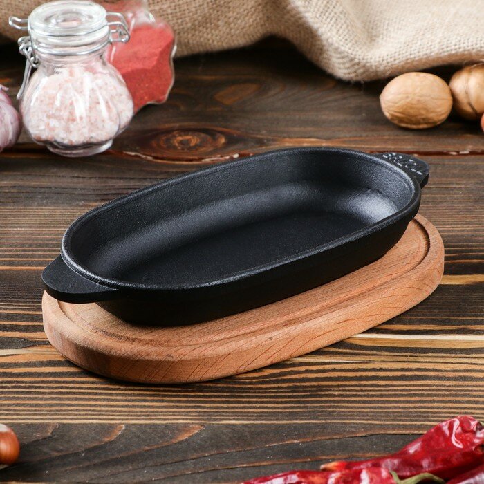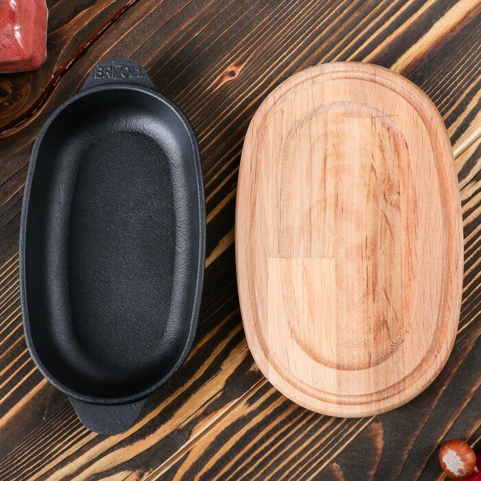 10 цен на BRIZOLL Сковорода чугунная овальная "хорека" с подставкой, 180 х 100 х 25 мм, ТМ BRIZOLL