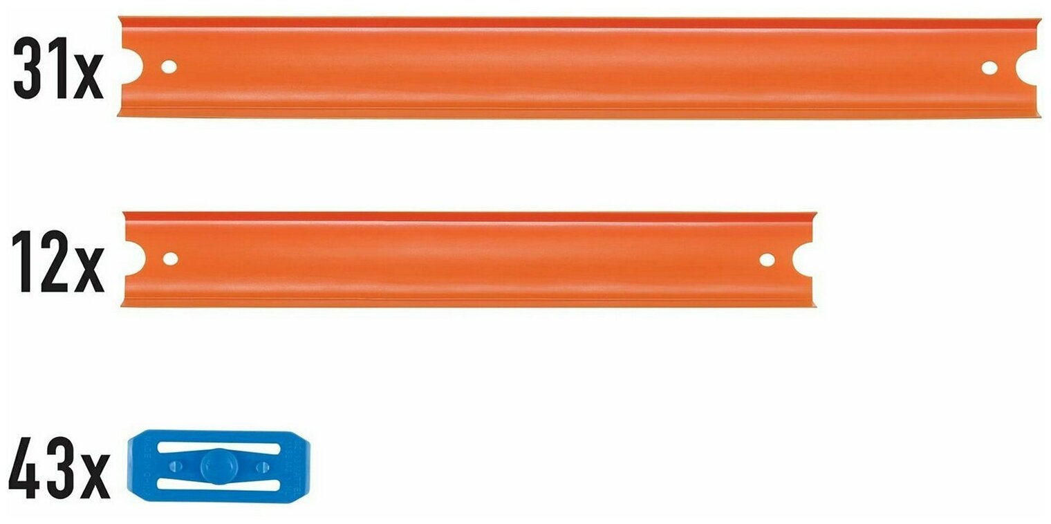 | Дополнительная информация | можно объединить с другими наборами Track Builder; в наборе представлены 43 разъема, соединяющие дорожки разной длины, для создания двенадцатиметровой трассы; не предназначено для детей до 3 лет |