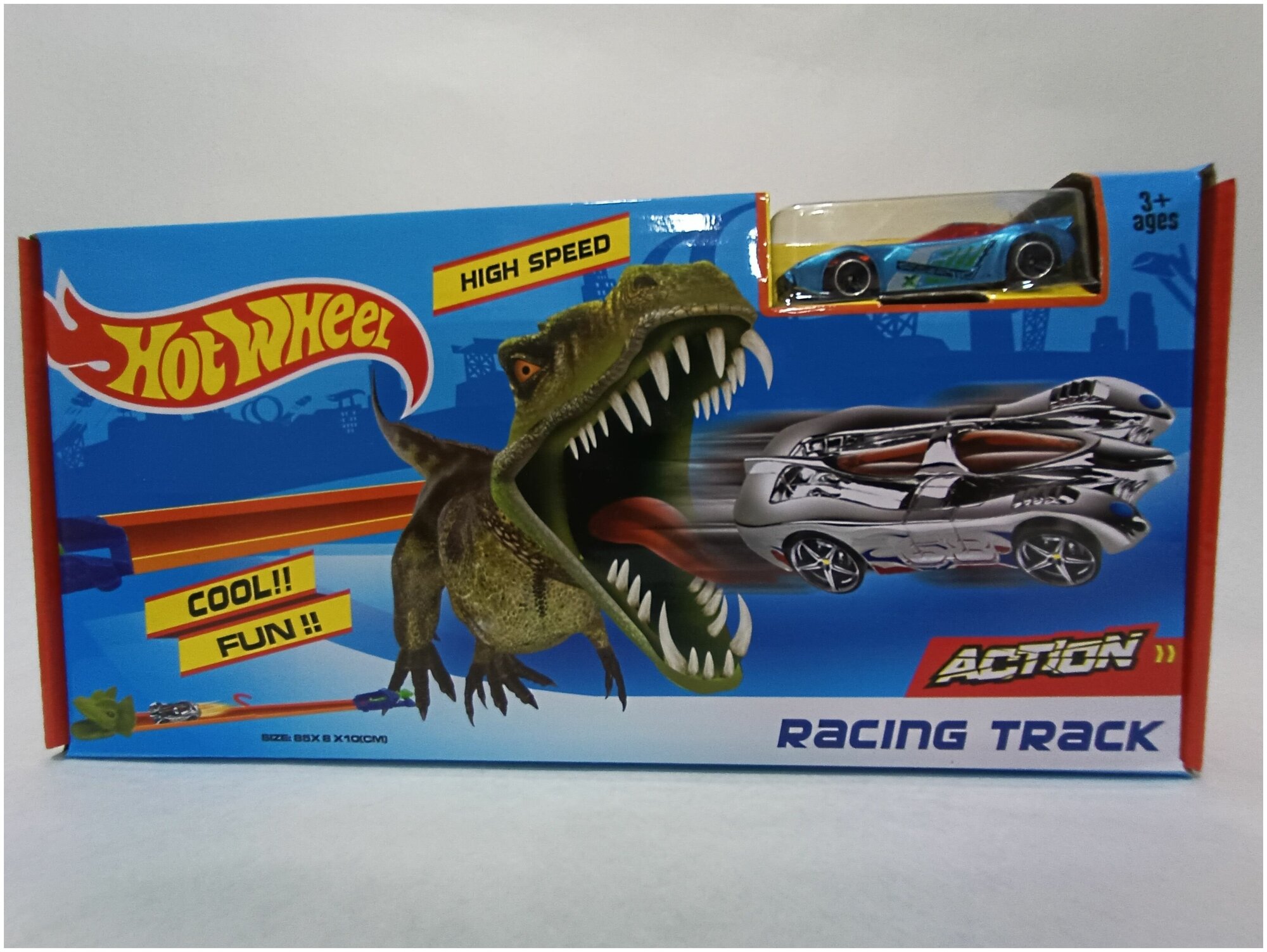 Автотрек с динозаврами и машинками Скоростной спуск для мальчиков, аналог хот виллс