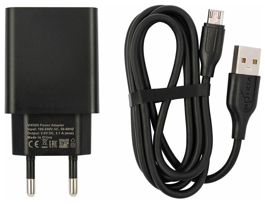 Сетевое зарядное устройство VIXION L7 (2-USB/2.1A) + micro USB кабель 1м (черный) информация: