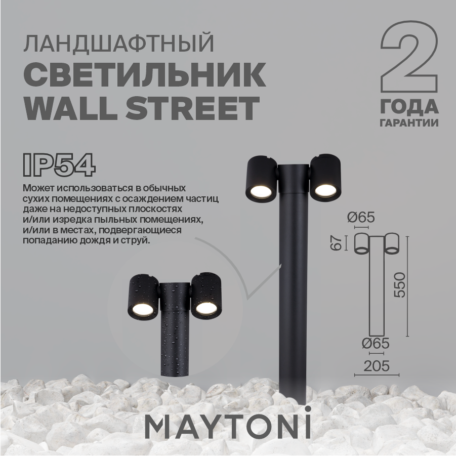 Уличный наземный светильник Maytoni Wall Street O010FL-02B, GU10, кол-во ламп:2шт., Черный 6 850 ₽