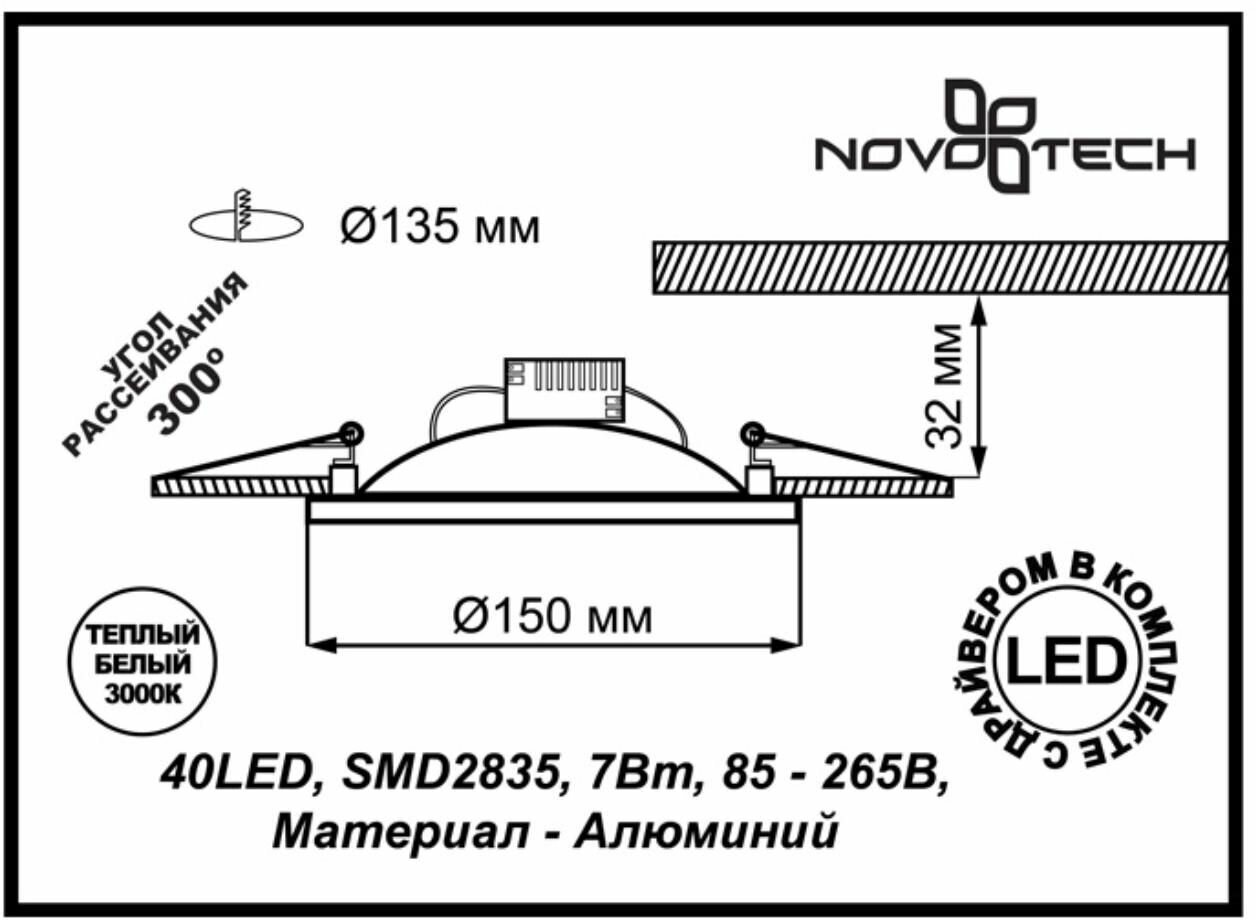 Встраиваемый светодиодный светильник Novotech GESSO 357502 информация: