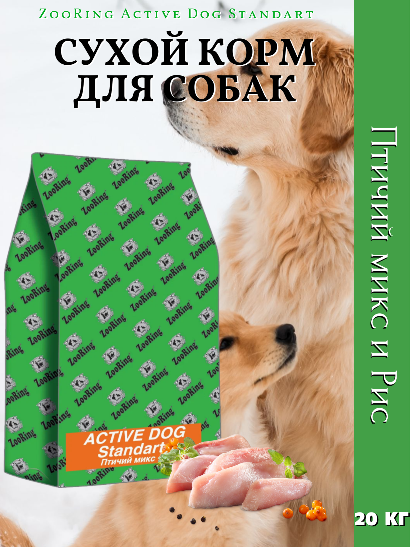 Сухой корм для собак ZooRing Standart, для активных животных, птица 20 кг (для крупных пород)