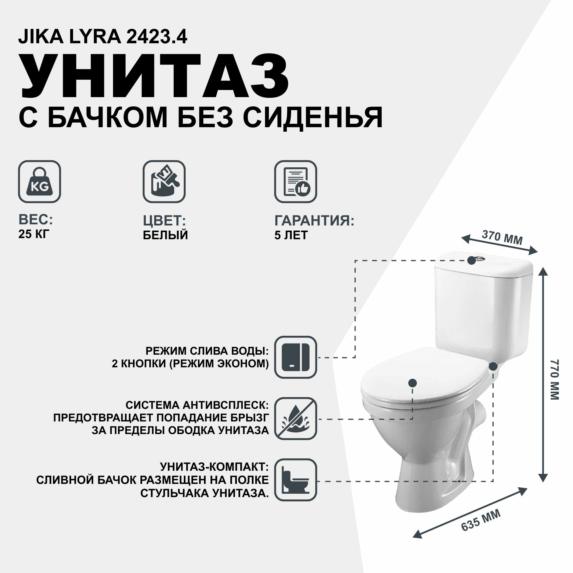 Унитаз-компакт с косым выпуском Jika Lyra 8242340002429 информация: