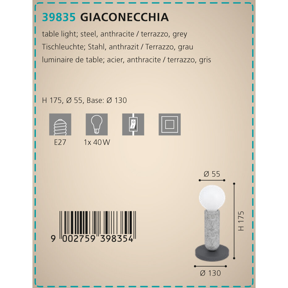 39835 Настольная лампа GIACONECCHIA, 1х40W (E27), Ø55, H175, основаØ130, сталь, антрацит/терраццо, с 3 790 ₽