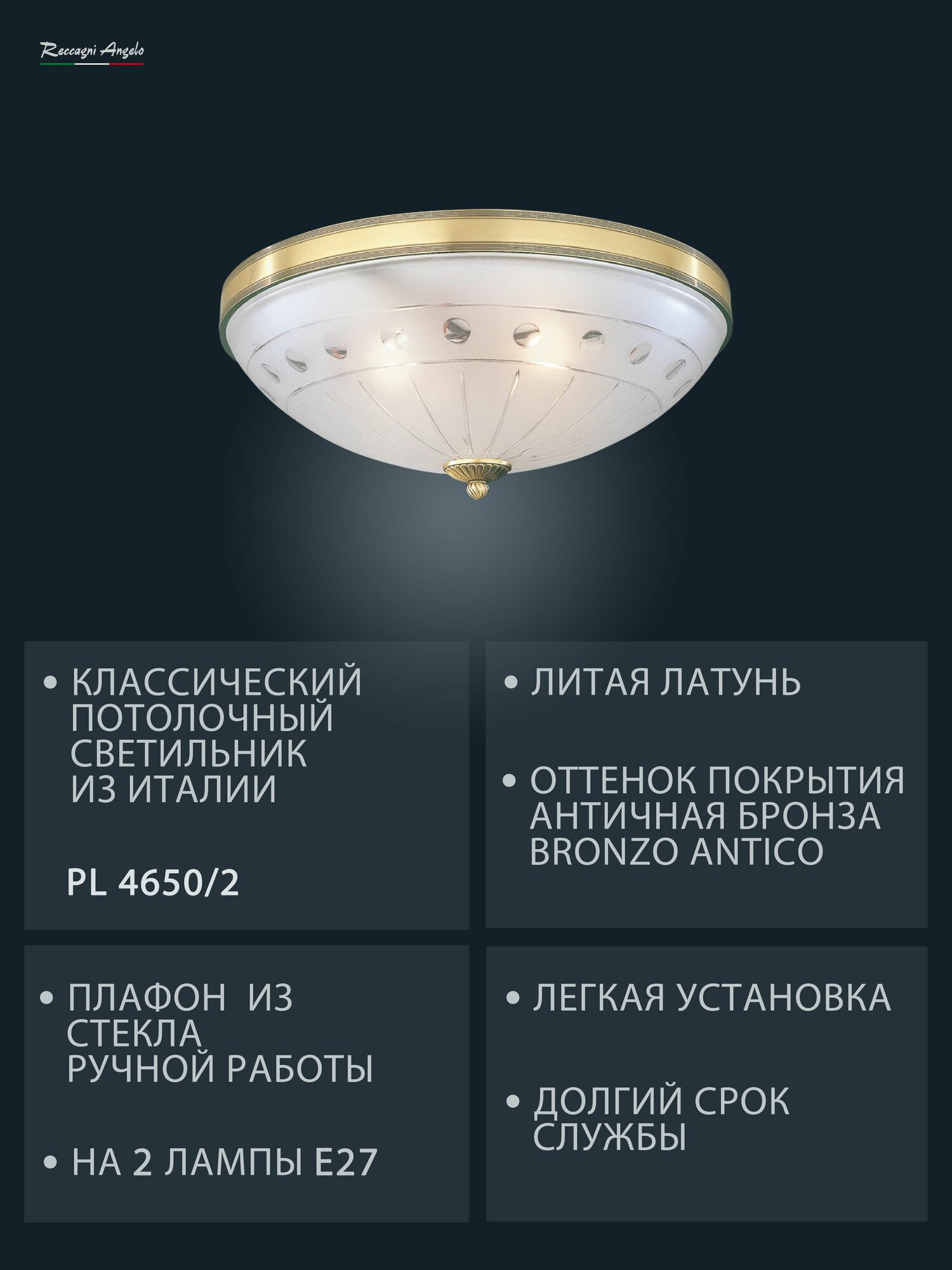 PL 4650/2 Потолочный светильник Reccagni Angelo, 1 плафон, бронза 41 759 ₽