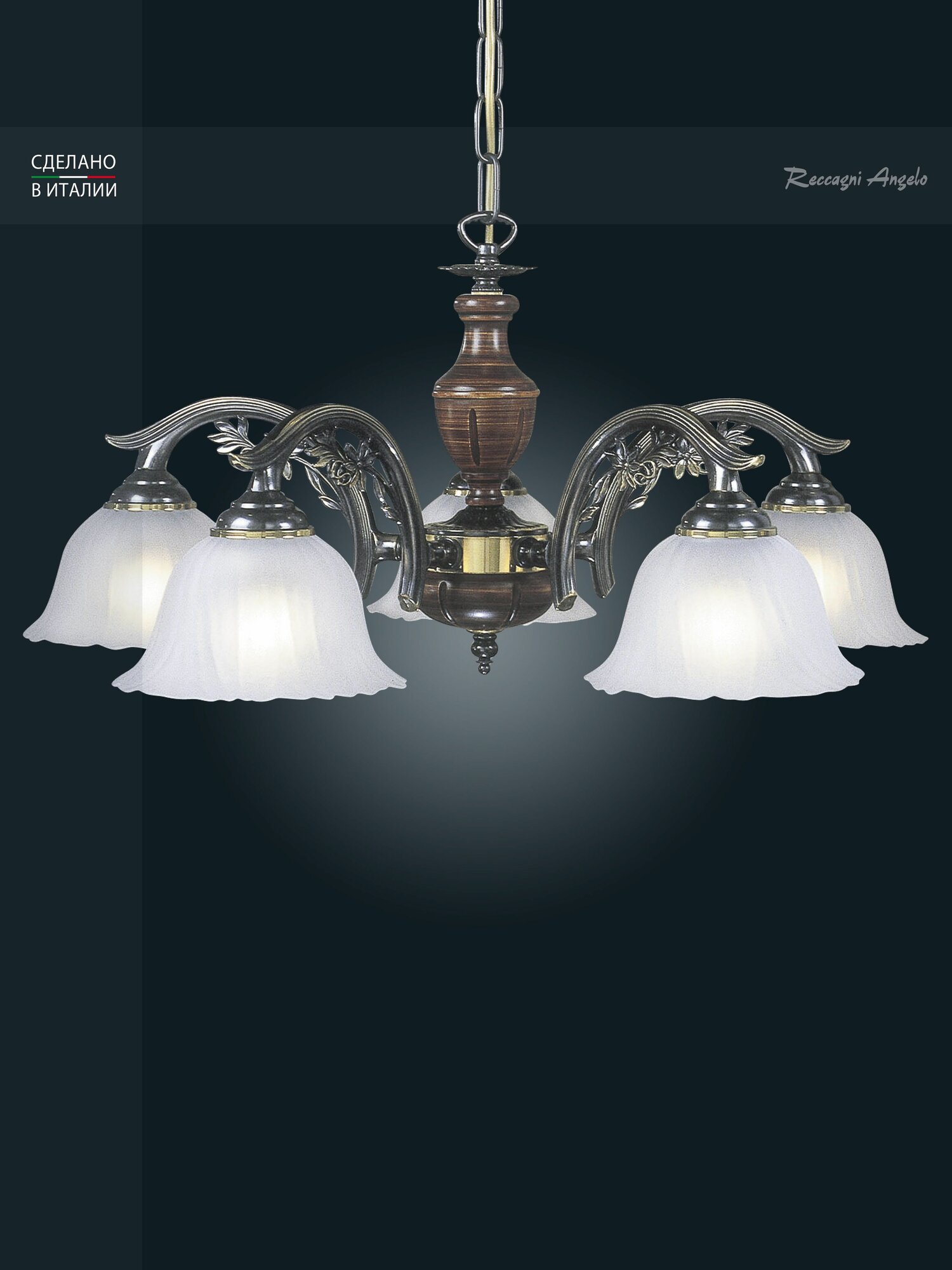 L 2700/5 Люстра подвесная Reccagni Angelo, 5 плафонов, бронза, дерево