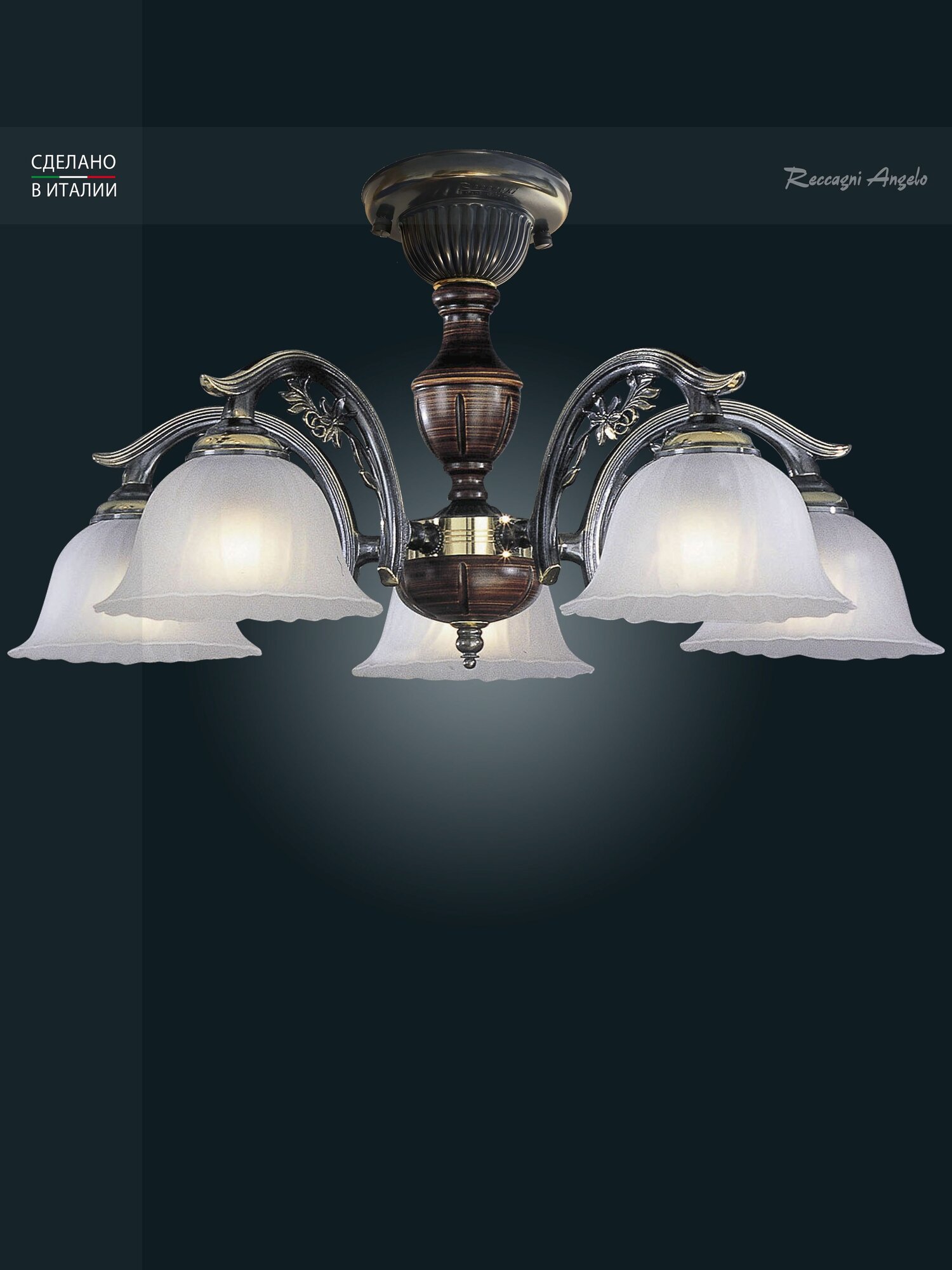 PL 2700/5 Люстра потолочная Reccagni Angelo, 5 плафонов, бронза 42 283 ₽