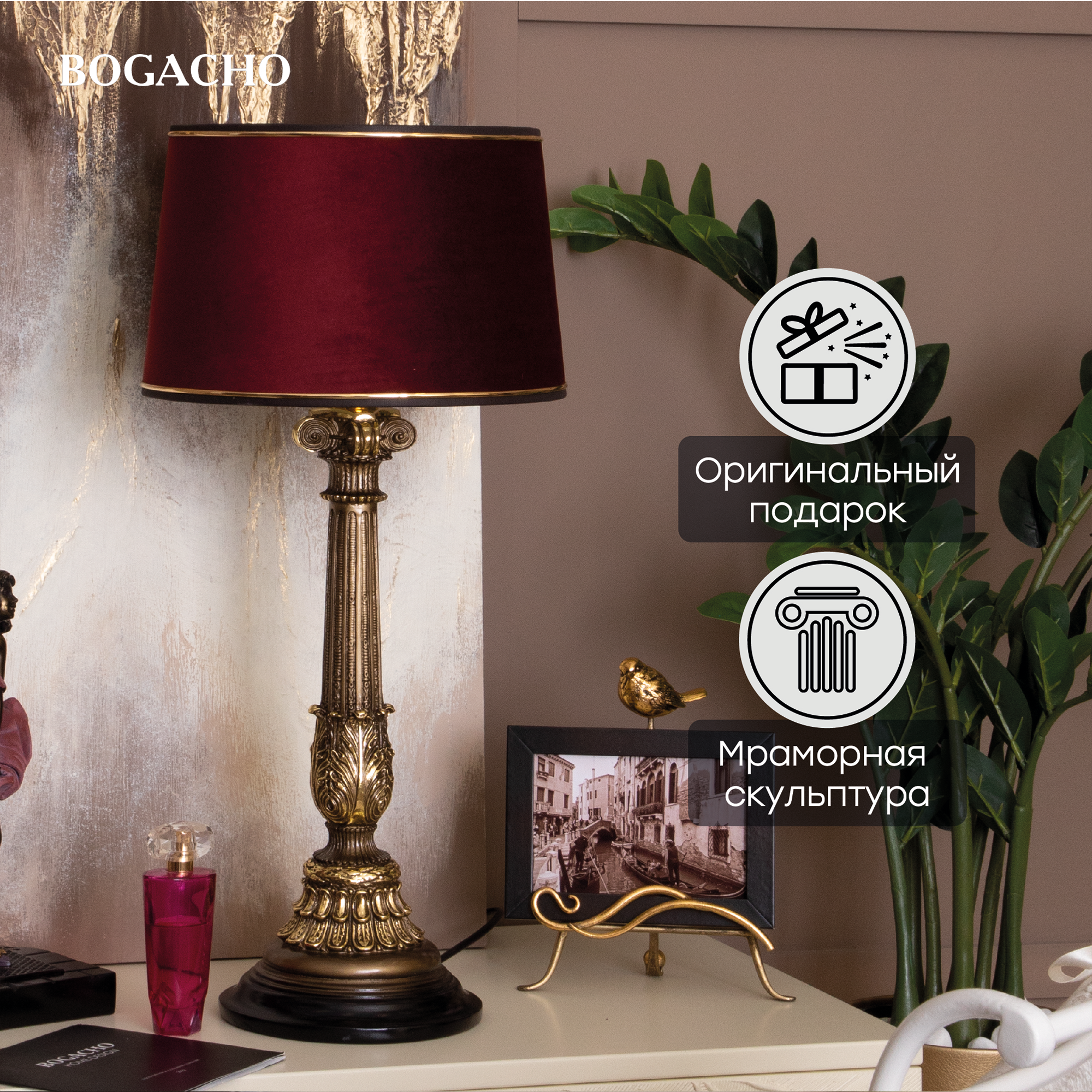 Отзывы на Настольная лампа Bogacho Колонна испанская бронзовая с бордовым абажуром Тюссо Конфети