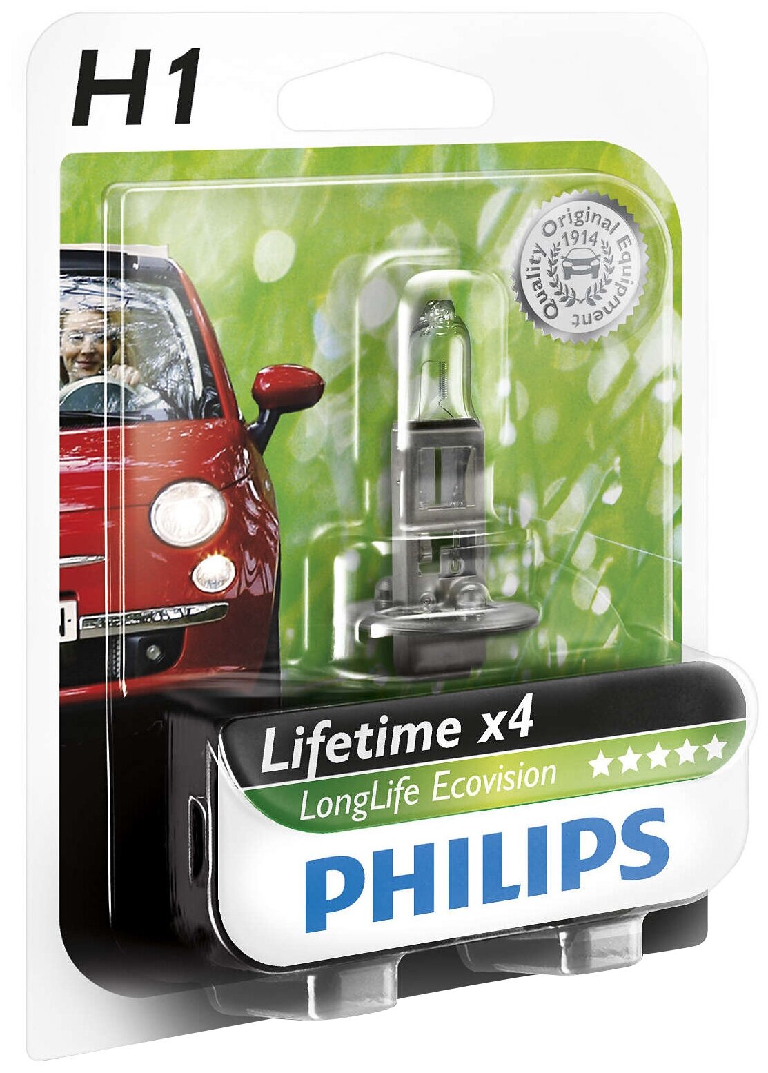 Лампа Галогенная Блистер 1Шт H1 12V 55W Longlife Ecovision (4-Х Кратный Срок Службы По Сравнению Со Стандартной Лампой) Phil...