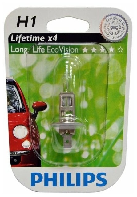 PHILIPS 12258LLECOB1 Лампа LONGLIFE ECOVISION 4X 12V H1 55W P14,5S (блистер) (1 шт.)