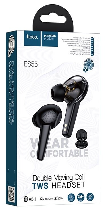 Наушники ES55, HOCO, беспроводные наушники, капельки, черные