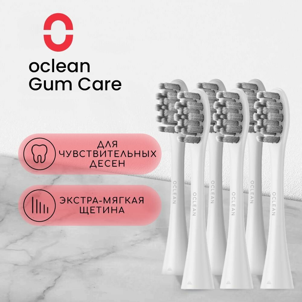 10 цен на Комплект насадок Для чувствительных десен Oclean P1S12 W06 (6 шт, Белый)